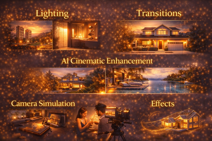 Transforms property visuals into an aspirational lifestyle experience. Builds an elite emotional perception beyond just square footage.